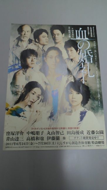 7月9日ににしすがも創造舎体育館特設劇場で開催中の『血の婚礼』の皆様に鈴木京香さんから楽屋見舞いのご注文をいただきました。 『一枚撮らせていただいていいですか?』と訪ねたらパンフレットをいただけました。