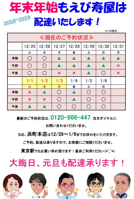 年末年始予約状況更新しました!