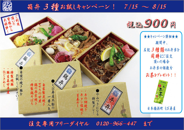 箱弁3種お試しキャンペーン! 7/15 ~ 8/15