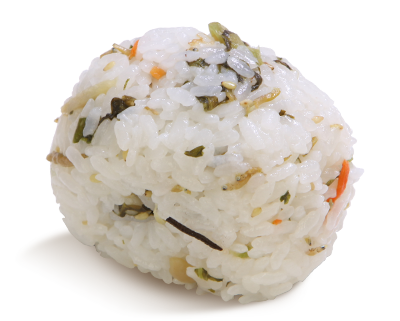 刻み生姜を混ぜ込んだサッパリとしたおにぎり。暑い日などにピッタリ!当店ではお弁当の平盛りでもこの生姜めしがお召し上がりできます。