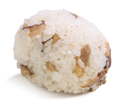 たっぷりの椎茸と鶏めしのコクを絶妙に合わせました。醇な旨味が詰まったおにぎりです。当店ではお弁当の平盛りでもこのなば鶏めしがお召し上がりできます。