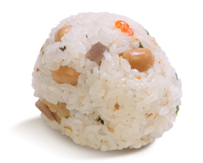 大豆・ごぼう・筍など数品目の野菜煮込を混ぜ込んだヘルシーなおにぎり。女性にオススメ!当店ではお弁当の平盛りでもこのごった煮めしがお召し上がりできます。